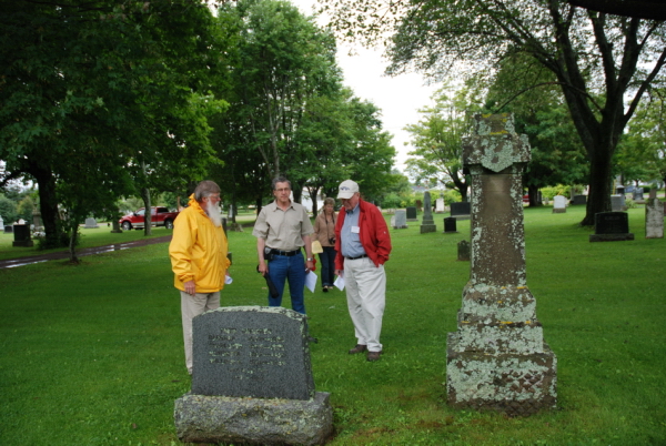David Walker, Ron Walker, Marlene (Walker) McLean and John Walker at the grave site of Elijah Hyatt Schurman (descendant of William Schurman, Loyalist) and Henriann Walker (daughter of John Walker & Jane Weir).