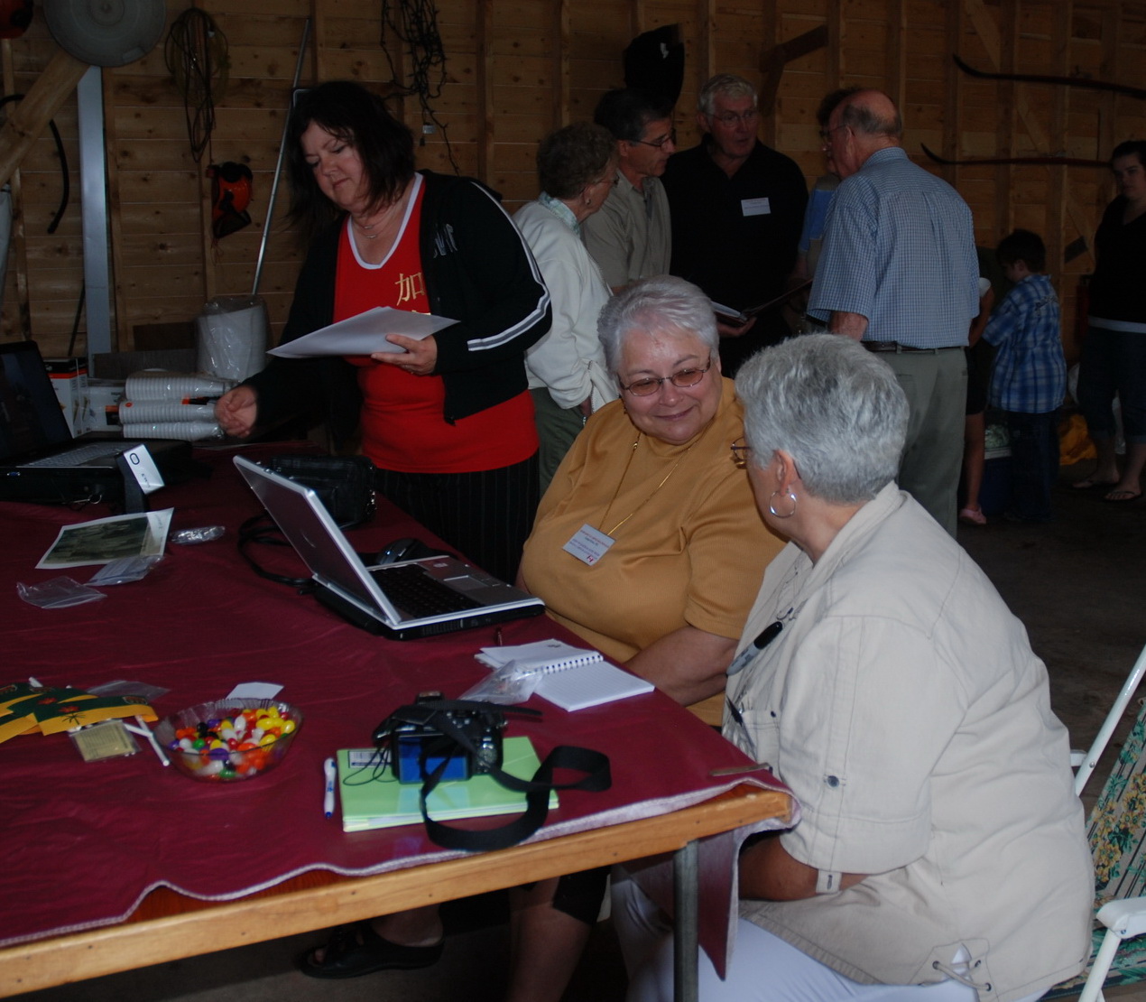 Even at the picnic you can find a diehard genealogist with her laptop.