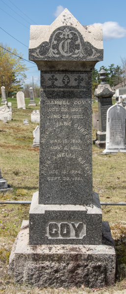 - [S12193] Cemetery marker, Upper Gagetown Cemetery, Upper Gagetown, Queens County, New Brunswick, Canada. Samuel Coy family plot, tombstone inscription & photograph; read by David A. Walker, 16 May 2017.