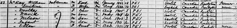 | Living | He was living in Summerside, Prince County, Prince Edward Island, CanadaG, in 1931.7 |