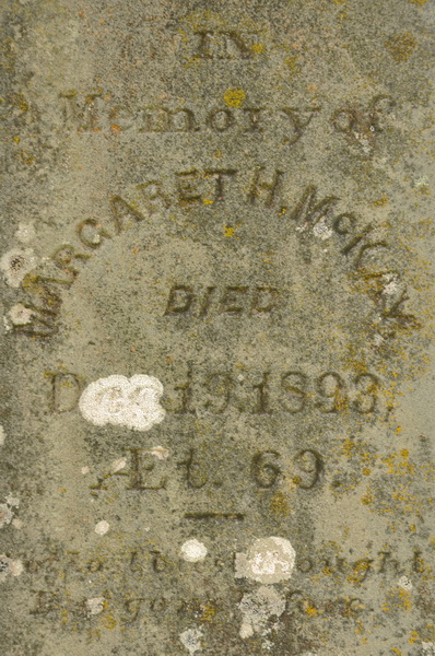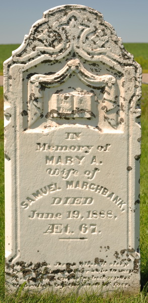 | Interred | She was buried in the plot of James Marchbank, Jr., in the Presbyterian Cemetery, North Bedeque, Prince County, Prince Edward Island, Canada, 46.36224, -63.72564G. Inscription: In Memory of / James Marchbank / Died Sep. 13, 1906. AET. 73. / Shed not for him the bitter tear, / Or give the heart to vain regret / Tis but the casket that lies here. / The gem that filled it sparkles yet. / Also His Wife / Jane Webster / Died Jan. 9, 1924, AEt. 81. / Marchbank. Back: Their Great Grandson / Robert C. Marchbank / Sept. 8, 1940 - Jan. 27, 1994 / His Wife / Nancy E. Simmons / May 7, 1943 -.13 ![]() Tombstone, James Marchbank Jr. (1833-1906), his wife Jane Webster (1843-1924), great grandson Robert C. Marchbank (1940-1994) and his wife Nancy Simmons (1943- ). North Bedeque Cemetery, North Bedeque, Prince County, Prince Edward Island, Canada. ![]() Front inscription detail. ![]() Back inscription detail. |