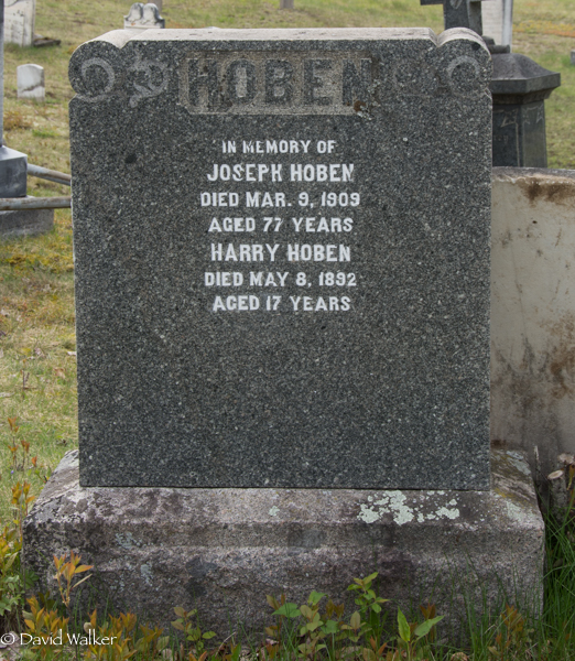 | Interred | He was buried in the in the Baptist Cemetery, Upper Gagetown, Queens County, New Brunswick, Canada, 45.84573, -66.24074G.2 Tombstone, Joseph Hoben (1830-1909), his son Harry Hoben (1875-1892). Upper Gagetown (Baptist) Cemetery, Queens County, New Brunswick, Canada. |