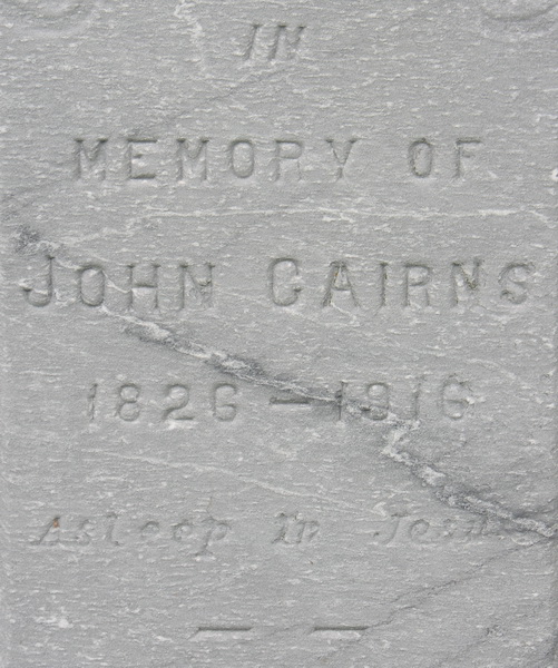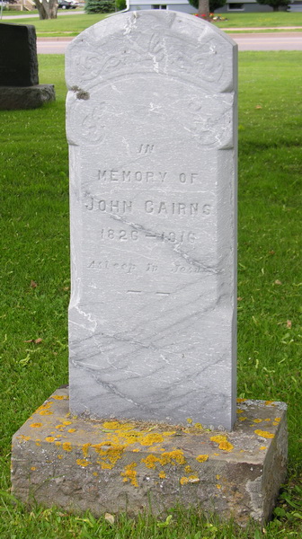 - [S3405] Cemetery marker - John Cairns (1826-1916). John Cairns, Tombstone inscription; David A. Walker, 2006.