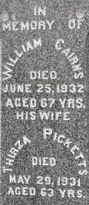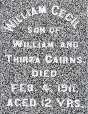 - [S4892] Cemetery Marker, Peoples Cemetery, Summerside, Prince County, Prince Edward Island, Canada. Benjamin Darby Cairns family plot, tombstone inscription & photograph; documented by David A. Walker, 17 August 2010.