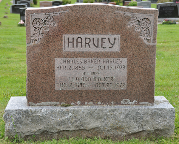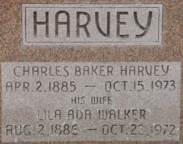 - [S4777] Cemetery Marker - Charles Baker Harvey. Charles Baker Harvey & Lila Ada Walker, Cemetery Marker; David A. Walker, 26 July 2010.