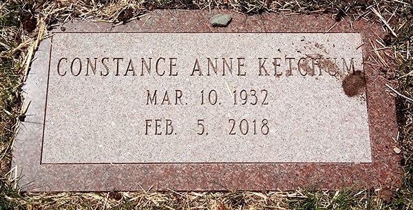 | Burial | She was buried on 2 June 2018 in Hope Cemetery, Kennebunk, York County, Maine, USAG.5 Marker, Constance Anne Ketchum (1932-2018). Hope Cemetery, Kennebunk, York County, Maine, U.S.A. |