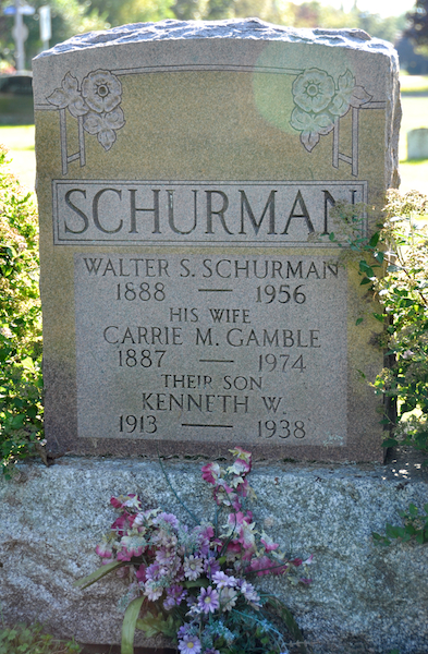 - [S5016] Cemetery Marker, Peoples Cemetery, Summerside, Prince County, Prince Edward Island, Canada. Walter S. Schurman family plot, tombstone inscription & photograph; documented by David A. Walker, 28 August 2010.