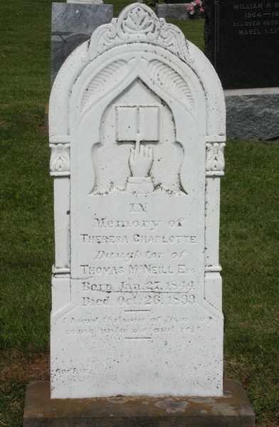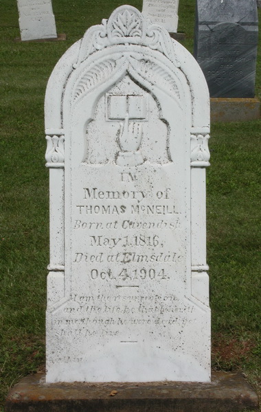 | Burial | He was buried in Nazarene United Church Cemetery, Elmsdale, Prince County, Prince Edward Island, Canada, 46.82209, -64.13636G. white marble tombstone. Inscription: In Memory of / William C. McNeill / Born May 4, 1849 / Died February 27, 1928 / Also His Wife / Emily L. McNeill / Born October 1, 1860 / Died October 10, 1945 / MCNEILL.1 White marble tombstone, William C. McNeill & Emily L. McNeill. Nazarene & United Church Cemetery, Elmsdale, Prince County, Prince Edward Island, Canada. Inscription: In Memory of / William C. McNeill / Born May 4, 1849 / Died February 27, 1928 / Also His Wife / Emily L. McNeill / Born October 1, 1860 / Died October 10, 1945 / MCNEILL.  Front inscription detail |