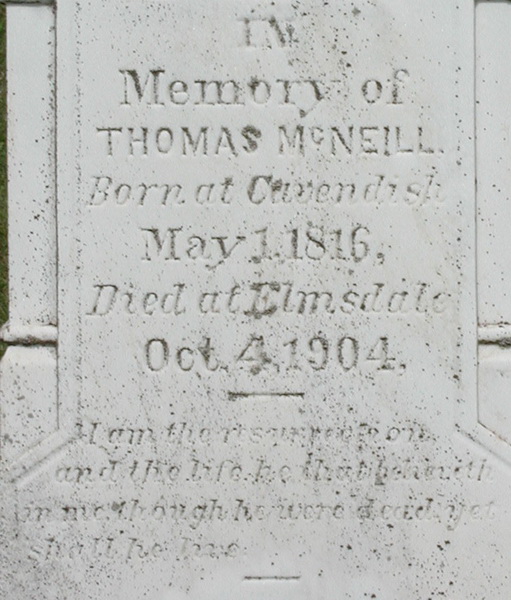 - [S3396] Cemetery Marker - Eliza McNeill. Eliza McNeill, Tombstone inscription; David A. Walker, 2006.