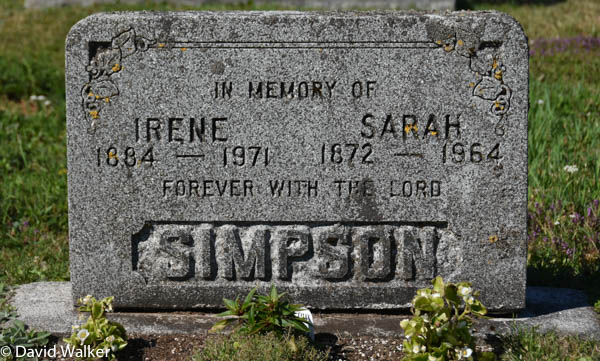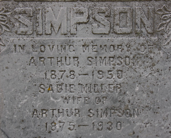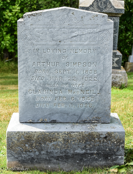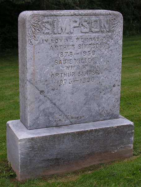 - [S3404] Cemetery Marker - Arthur Simpson. Arthur Simpson, Tombstone inscription; David A. Walker, 2006.