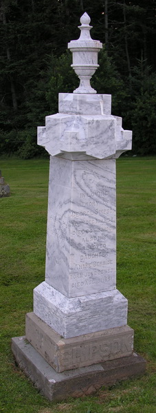 - [S7038] Cemetery marker, Cavendish Cemetery, Prince Edward Island. George Woodside Simpson, tombstone inscription; read by David A. Walker, 4 August 2006.