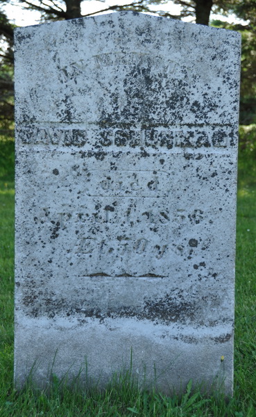 Inscription: In Memory / of / David Schurman / died / April 1, 1856 / AEt. 50 y's.3  Tombstone, David Schurman (1806-1856). Wilmot Valley Cemetery, Prince County, Prince Edward Island, Canada.