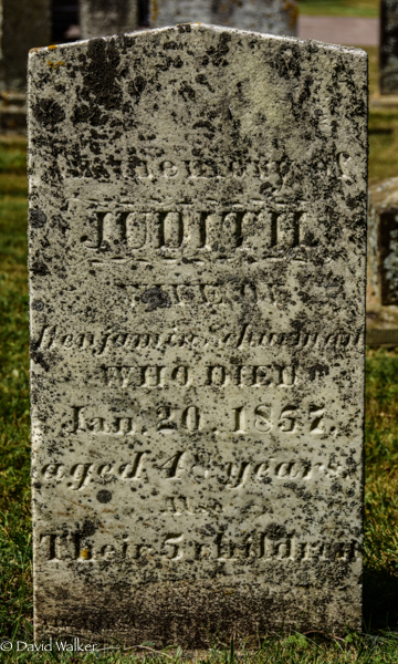 | Principal 2 | She witnessed the burial of Benjamin Schurman and Judith Baker in the United-Baptist Cemetery, Central Bedeque, Prince County, Prince Edward Island, Canada, 46.34195, -63.70269G.2,3 Tombstone, Benjamin Schurman (1800-1877), his wife Judith Baker (1809-1857). United-Baptist Cemetery, Central Bedeque, Prince County, Prince Edward Island, Canada.  Tombstone, Judith Baker (1809-1857). United-Baptist Cemetery, Central Bedeque, Prince County, Prince Edward Island, Canada. |
