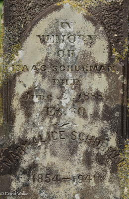 Inscription: In memory of / Father / Alfred Schurman / Died / Mar. 7, 1907. / ÆT. 81 yrs. | Mother / Mary B. Wright / Wife of / Alfred Schurman / Died Sept. 28, 1905. / ÆT. 82 yrs.2,1  Tombstone, Alfred Compton Schurman (1826-1907), his wife Mary Bremble Wright (1823-1905). United Church Cemetery (Bedeque Cemetery), Lower Bedeque, Prince County, Prince Edward Island, Canada.