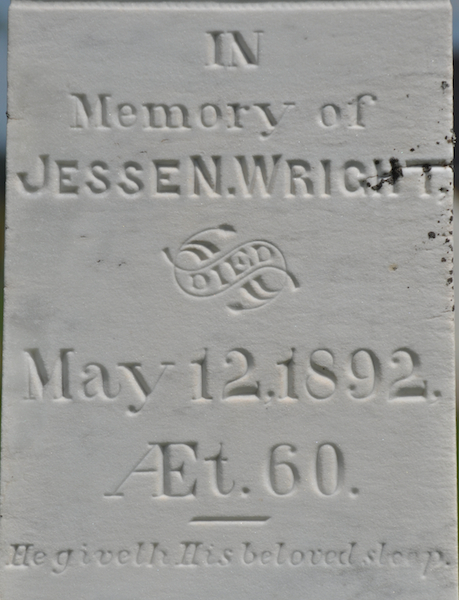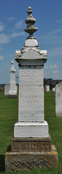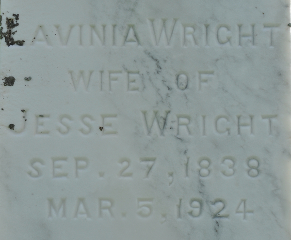 - [S6216] Cemetery Marker - Jesse N. Wright. Jesse N. Wright & Lavinia D. Wright, tombstone inscription; David A. Walker, 1 August 2011.