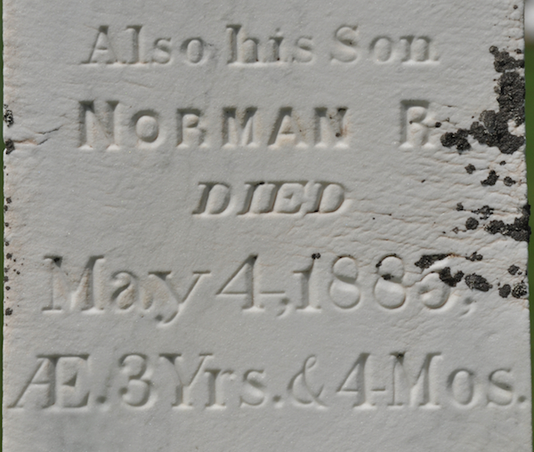| Burial | She was buried in the United Church Cemetery, Lower Bedeque, Prince County, Prince Edward Island, Canada, 46.34685, -63.73418G. Inscription: In / Memory of / Jesse N. Wright / Died / May 12, 1892 / AEt. 60. / He giveth his beloved sleep.Left: Lavinia Wright / Wife of / Jesse Wright / Sept. 27, 1838 / Mar. 5, 1924Right: Also his son / Norman R. / Died / May 4, 1885, / AE. 3 Yrs. & 4 Mos.3 Tombstone, Jesse N. Wright (1832-1892), his wife Lavinia Davies Wright (1838-1924), their son Norman R. Wright (1882-1885). United Church Cemetery (Bedeque Cemetery), Lower Bedeque, Prince County, Prince Edward Island, Canada.  Front inscription detail.  Left inscription detail.  Right inscription detail. |