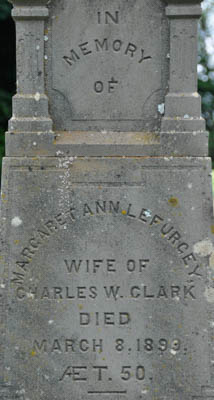 - [S3364] Cemetery Marker - Margaret Ann Lefurgey. Charles William Clark, Tombstone inscription; David A Walker, 1 August 2006.