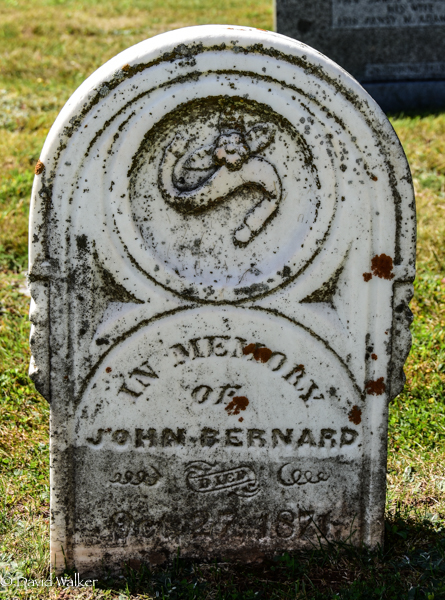 Inscription: In Memory / of / John Bernard / Died / Oct. 27, 1871.3,4  Cemetery Marker: John Bernard (1789-1871). St. Thomas Anglican Church Cemetery, Springbrook, Queens County, Prince Edward Island, Canada.