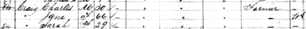 - [S4771] 1881 Canada Census - Charles Craig, Household #83, of Charles Craig, 1881, Microfilm C-13162, p. 19. Lot 27, Prince County, Prince Edward Island. Library & Archives Canada, Library & Archives Canada; 395 Wellington St., Ottawa,, Ontario, Canada.