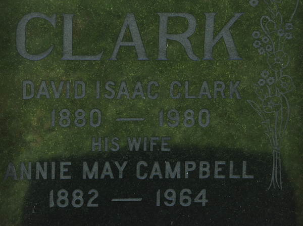- [S2706] Cemetery Marker David Isaac Clark (Annie May Campbell). Annie May Campbell, Cemetery Marker; David A. Walker, 14 August 2006.