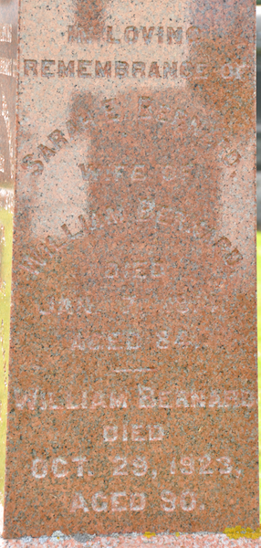 - [S6160] Cemetery Marker - William Bernard. William Bernard & Sarah Elizabeth Bernard, Marker Inscription; David A. Walker, 16 July 2011.