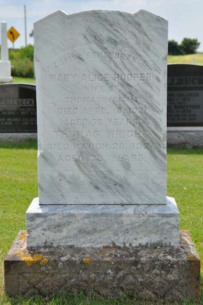 - [S4735] Cemetery Marker - Thomas Wright & Mary Alice Hooper. Thomas Wright & Mary Alice Hooper, Cemetery Marker; David A. Walker, 18 July 2010.