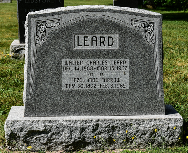 Inscription: LEARD / Walter Charles Leard / Dec. 14, 1888 - Mar. 15, 1962 / His Wife / Hazel Mae Farrow / May 30, 1892 - Feb. 3, 1965.1,2  Tombstone, Walter Charles Leard (1888-1962), his wife Hazel Mae Farrow (1892-1965). United-Baptist Cemetery, Central Bedeque, Prince County, Prince Edward Island, Canada.
