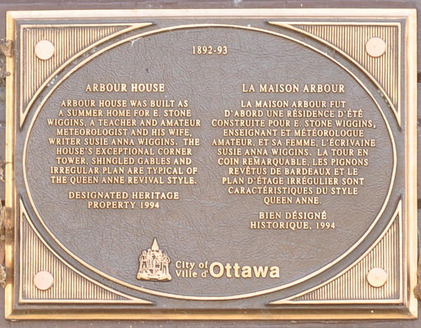 | Death | He died on 14 August 1910 in Arbour House, Britannia (then a suburb of Ottawa), Ontario, CanadaG.2 Arbour House, Britannia, Ottawa, Ontario, Canada, residence of Ezekiel Stone Wiggins.  Plaque on Arbour House, designated a Heritage Property in 1994. |