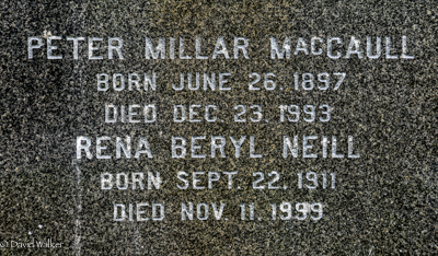 | Interred | Rena Beryl Neill was buried in the plot of Peter Millar MacCaull, in the Presbyterian Cemetery, Tyne Valley, Prince County, Prince Edward Island, Canada, 46.57316, -63.93051G.