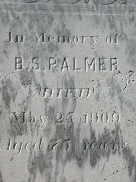 | Burial | He was buried in the Palmer Cemetery, Central Hampstead, Queens County, New Brunswick, CanadaG. row 6, stone 1, black granite.Inscription: In Memory Of / Beverley R. 1851-1931 / His Wife / Lina P. Wasson / 1874-1931 / Their Children / Ethel Pearl 1901-1906 / Myrtle Ruth 1905-1911 / Mildred Evelyn 1912-1922.12,5 ![]() Tombstone, Beverley Robinson Palmer (1851-1931), his wife Lina P. Wasson (1874-1931), their children Ethel Pearl (1901-1906), Myrtle Ruth (1905-1911 and Mildred Evelyn (1912-1922). Palmer Cemetery, Central Hampstead, Queens County, New Brunswick, Canada. |