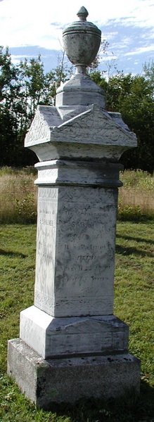| Burial | He was buried in the Palmer Cemetery, Central Hampstead, Queens County, New Brunswick, CanadaG. row 4, stone 1.Inscription: Sarah A. / Beloved Wife of / Daniel Palmer / Died April 6th, 1873, / Aged 26 yrs. & 9 mo's. / ~~ / Daniel Palmer / 1837 - 1908 / ~ / Dear as thou art and justly dear / We will not weep for thee / One thought shall check the starting tear / It is that thou art free.8![]() Inscription detail. ![]() Tombstone, Daniel Palmer (1838-1909) and Sarah A. Carpenter (1847-1873), Palmer Cemetery, Central Hampstead, Queens County, New Brunswick, Canada. |