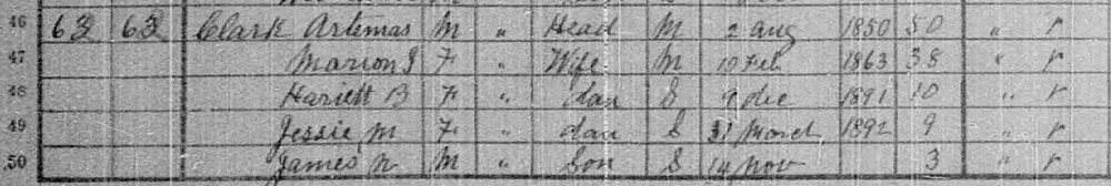 | Daughter | Jessie Marion Clark b. 29 March 1891, d. 1965 |