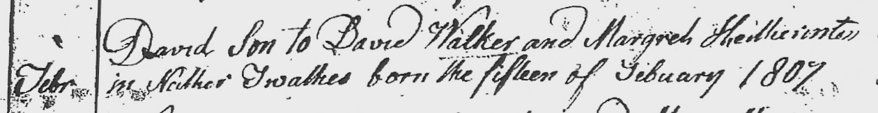 | Birth | Margret Walker was born on 15 April 1820, in Dumfriesshire, ScotlandG.1 |