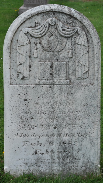| Interred | She was buried in the plot of Elijah Hyatt Schurman, in the Peoples Cemetery, Summerside, Prince County, Prince Edward Island, Canada, 46.40518, -63.77657G. Inscription: Schurman / Elija Schurman / 1823-1895 / His wife / Henriann Walker / 1823-1919.Back: Their children / Barbara 1853-1906 / Charlotte / 1865-1932 / Henrietta 1867-1893 / William H. 1861-1946 / Lena M. Steeves / 1877-1963.12 ![]() Tombstone, Elijah Hyatt Schurman (1825-1897), his wife Henriann Walker (1823-1919), their children Barbara (1853-1906), Charlotte (1865-1932), Henrietta (1867-1893), William H. (1861-1946) and Lena Maude (1877-1963). Peoples Cemetery, Summerside, Prince Edward Island, Canada. ![]() Back inscription detail. |
