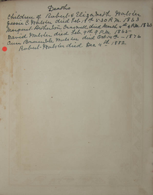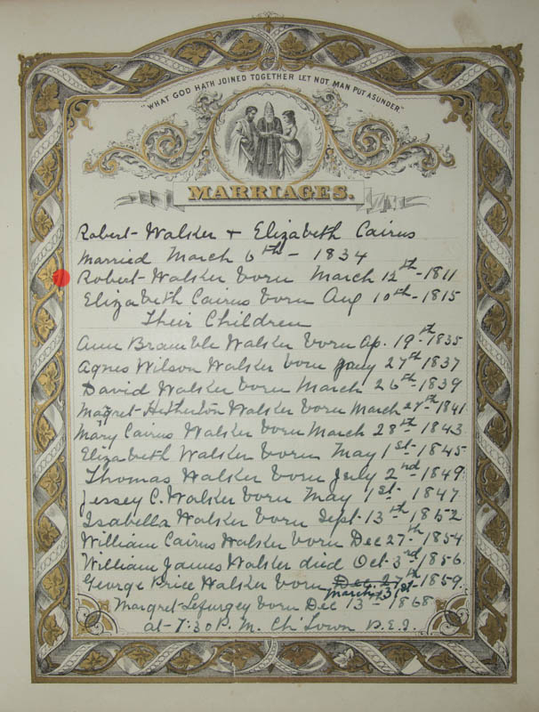 | Daughter | Jessie Cairns Walker b. 1 May 1847, d. 18 February 1863 |