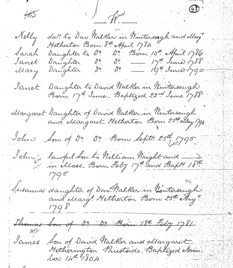 | Daughter | Margaret Walker b. 4 November 1825 |