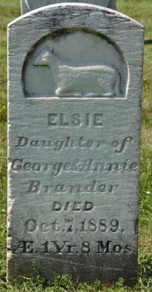 | Burial | She was buried in the Peoples Cemetery, Malpeque, Prince County, Prince Edward Island, Canada, 46.53025, -63.68758G. Inscription: Elsie / Daughter of / George & Annie / Brander / Died / Oct. 7, 1889, / Æ. 1 yr. 8 mos.2![]() Tombstone, Elsie Brander (1887-1889). Peoples Cemetery, Malpeque, Prince County, Prince Edward Island, Canada. |