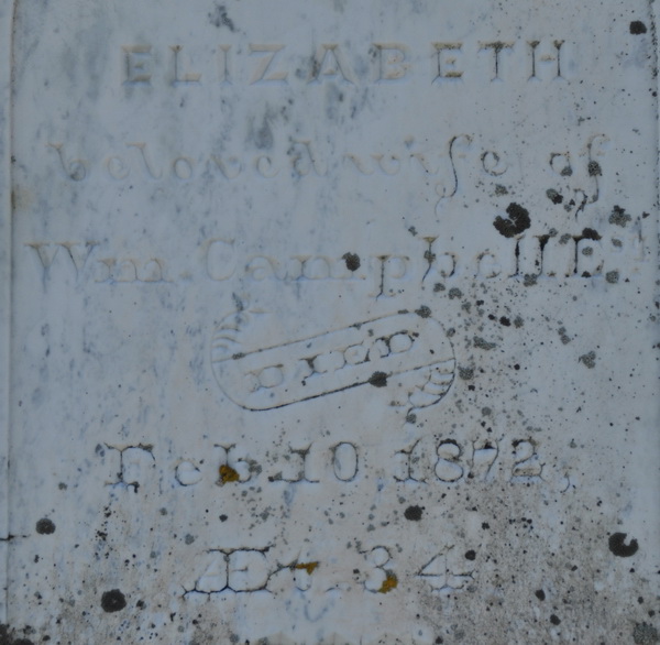 | Burial | She was buried in Geddie Memorial Cemetery, Springbrook, Queens County, Prince Edward Island, Canada, 46.49427, -63.50741G. stone #361. Inscription: Elizabeth / Beloved wife of / Wm. Campbell / died Feb. 10, 1872 / AE. 34.1![]() Tombstone, Elizabeth (MacLeod) Campbell (c1838-1872). Geddie Memorial Cemetery, Springbrook, Queens County, Prince Edward Island, Canada. ![]() Front inscription detail. |