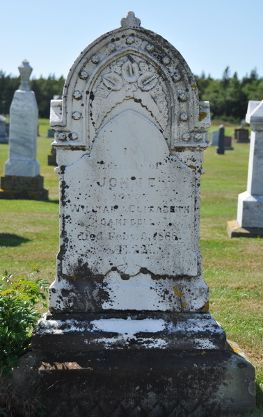 | Burial | He was buried in Geddie Memorial Cemetery, Springbrook, Queens County, Prince Edward Island, Canada, 46.49427, -63.50742G. stone #362. Inscription: In / Memory of / John E. / son of / William & Elizabeth / Campbell / died Feby. 3, 1888. / AE 22.1![]() Tombstone, John Eddy Campbell (c1866-1888). Geddie Memorial Cemetery, Springbrook, Queens County, Prince Edward Island, Canada. ![]() Front inscription detail. |
