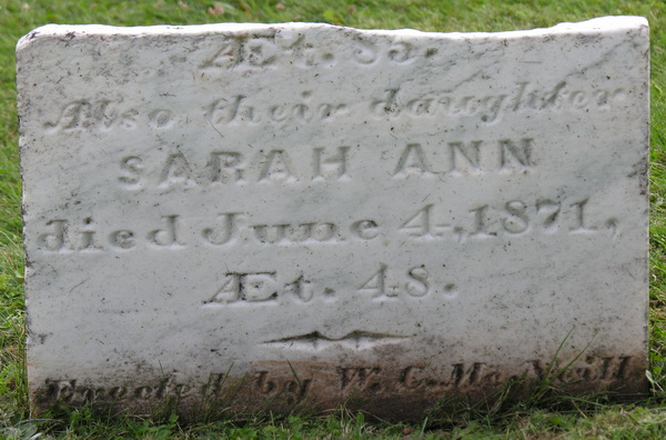 | Name | Sarah Ann MacNeill was also known as Sarah MacNeill. |