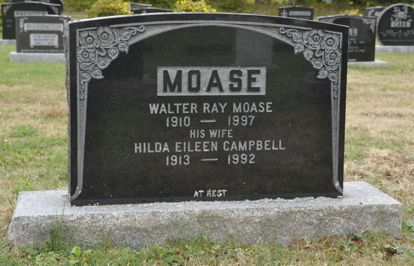 - [S8889] Tombstone, Peoples Cemetery, Kensington, Prince County, Prince Edward Island, Canada. Walter Ray Moase & Hilda Eileen Campbell, marker inscription; read by David A. Walker, 10 September 2013.