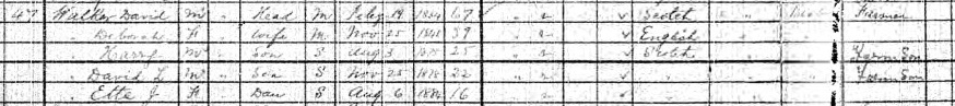 | Census | David Walker was head of the household in the census in 1881 in the 1881 census David, his wife Deborah (Lowther) and children John, Henry and David, were living with his parents.8 |