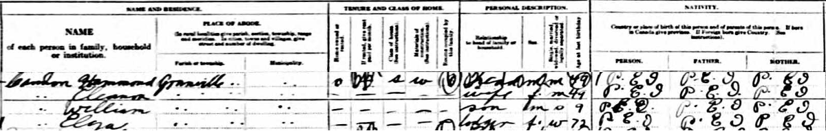 | Census | He was head of the household in the census on 31 March 1901 in Summerside, Prince County, Prince Edward Island, CanadaG. Enumerated in the household with Henry was his wife Mary (Squires Smythe). His name was entered as Henry G. Their religion was Presbyterian.4![]() 1901 Canada Census, George Henry Walker household, wife Mary (Squires). Summerside, Prince County, Prince Edward Island, Canada. |