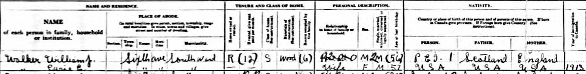 | Census | William Walker was head of the household in the census in 1921 in Victoria St., Kensington, Prince County, Prince Edward Island, CanadaG. Enumerated in the household of William Walker (age 75) was his wife Helena Mills (age 50). William was a farmer. Both were Presbyterian. Also enumerated were Ralph Balderson (age 24) a grocer, and Wesley Strong (age 24) a carpenter, both lodgers.12 |