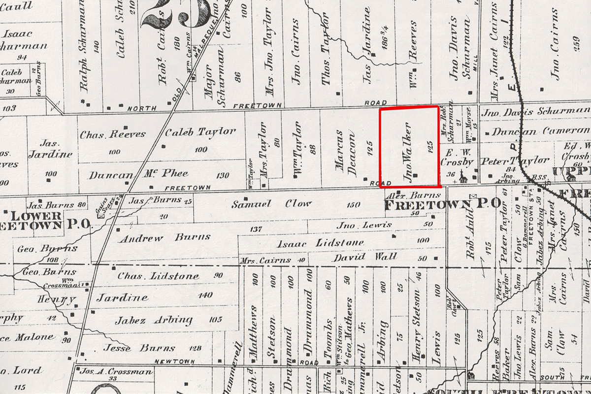 | Marriage | He married first Mary Found on 11 April 1878 in the Presbyterian Church, North Bedeque, Prince County, Prince Edward Island, Canada, 46.36518, -63.72410G, William Walker (B) Mary Found (S) Married Apr. 11 1878 by license by Robert L. Patterson, minister. Witnesses, John Hogg, John McMurdo. Recorded Aug. 8 1878. (Marriage Register 1871-1878, C. Young Surrogate). The marriage bond was dated 9 April 1878. William Walker was a bachelor from Lot 25, Mary Found was a spinster from Long River.4,5,6 |