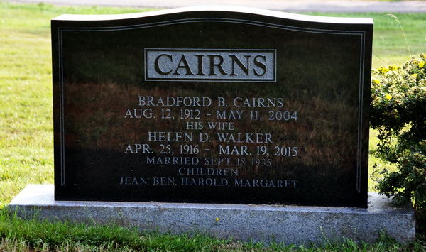 | Interred | He was buried in the plot of David Walker, in the Peoples Cemetery, Summerside, Prince County, Prince Edward Island, Canada, 46.40442, -63.77681G. Inscription: David Walker / Feb. 19 - 1831 March 16 - 1914 / His Wife / Deborah F. Lowther / Nov. 25 - 1841 Aug. 2 - 1932 / Margaret J. Ferguson / Wife of / David L. Walker / March 4 - 1881 Nov. 17 - 1924 / WALKER. Left: D. Joan Walker / Jan. 3, 1939 / 22 January 2020 / Her Husband / B. Nason Glover / Aug. 15, 1935 / Dec. 8, 2016 Right: Ruth C. Walker / Aug. 23 - 1917 / May 11 - 1921 / David L. Walker / Nov. 25 - 1878 / Mar. 18 - 1966 / David Leroy / Walker / Mar. 12 - 1914 / May 5 - 1978 / His Wife / H. Adelaide Taylor / July 8, 1915 / Apr. 29, 1989. Back: Harry W. Walker / Aug. 3 - 1872 July 27 - 1940 / His Wife / Harriet L. Clark / Feb. 11 - 1885 June 27 - 1953 / WALKER.7,8 ![]() Right inscription detail. ![]() Tombstone, David Walker (1831-1914) and family members, Peoples Cemetery, Summerside, Prince County, Prince Edward Island, Canada. ![]() Front inscription detail. ![]() Back inscription detail. ![]() Right inscription detail. |