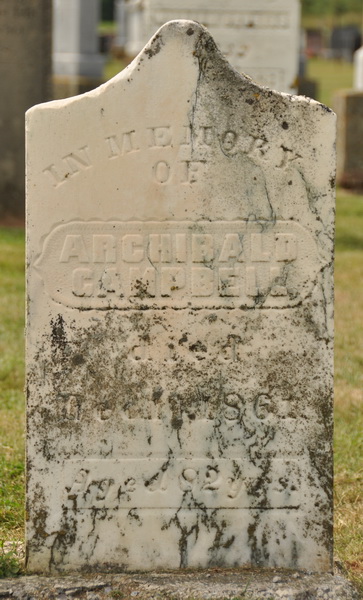 - [S7302] Cemetery Marker. Archibald Campbell, inscription; read by David A. Walker, 18 August 2012.