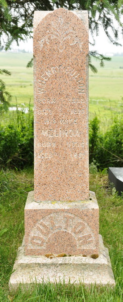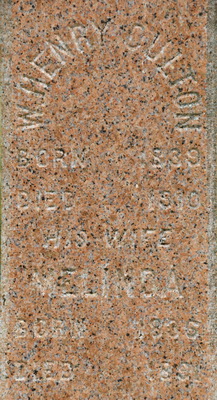 | Burial | She was buried in Old Presbyterian Cemetery, Jolicure, Westmorland County, New Brunswick, Canada, 45.93563, -64.23394G. flat stone lying on ground. Inscription: Mother / In memory of / Melinda / Wife of / Henry Oulton / Died / April 21, 1891 / Aged 55 yearsPolished square red granite stone. Inscription: W. Henry Oulton / Born 1839/ Died 1910 / His Wife / Melinda / Born 1836 / Died 1891.2 Tombstone, Melinda (Dobson) Oulton (1836-1891). Old Presbyterian Cemetery, Jolicure, Westmorland County, New Brunswick, Canada.  Tombstone, William Henry Oulton (1839-1910), his wife Melinda (Dobson) Oulton (1836-1891). Old Presbyterian Cemetery, Jolicure, Westmorland County, New Brunswick, Canada.  Front inscription detail. |