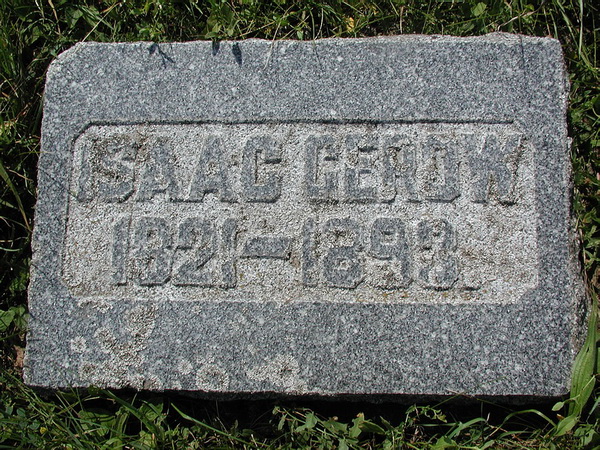 | Burial | He was buried in Christ Church Cemetery, Hillier, Prince Edward County, Ontario, CanadaG. flat stone. Inscription: Isaac Gerow / 1821 - 1893.1,5 Tombstone, Isaac Gerow (1821-1893). Christ Church Cemetery, Hillier, Prince Edward County, Ontario. |