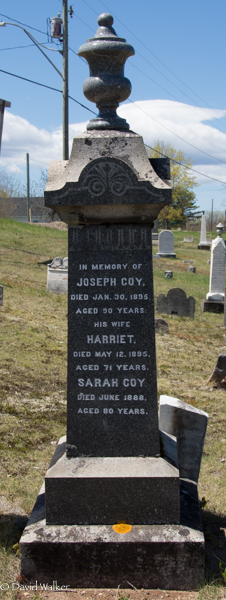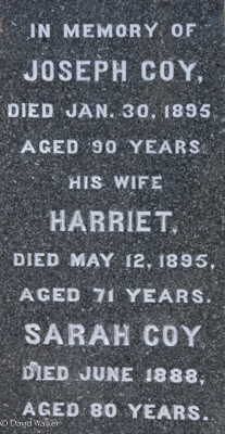 - [S3414] Cemetery Marker- Rev. David Coy. Rev. David Coy, Tombstone inscription; David A. Walker, 17 July 2005.